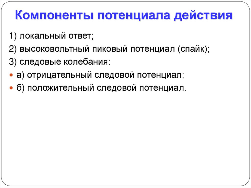 1) локальный ответ;2) высоковольтный пиковый потенциал (спайк);