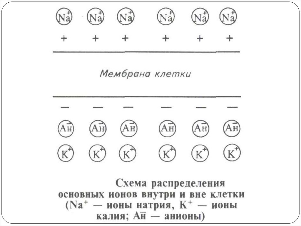 снаружи его мало. Ионов Na и ионов Cl больше снаружи, чем