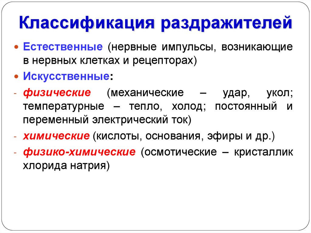 Естественные (нервные импульсы, возникающиев нервных клетках и рецепторах)