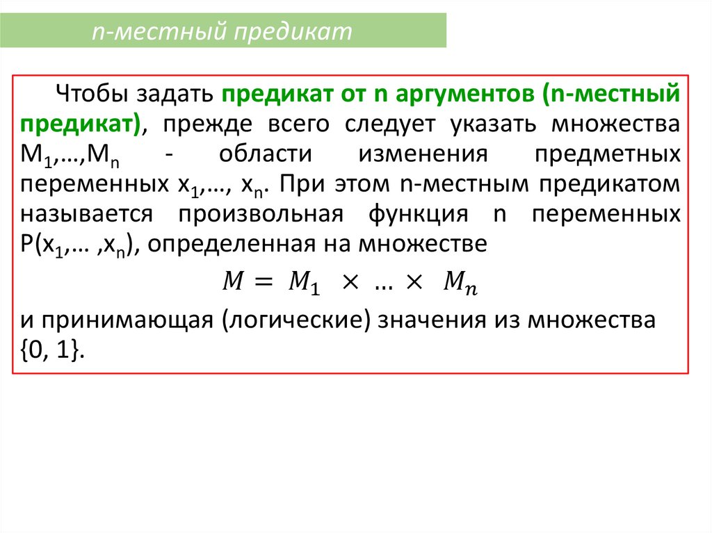 4) Какой предикат называется n-местным? Область истинности n-местного