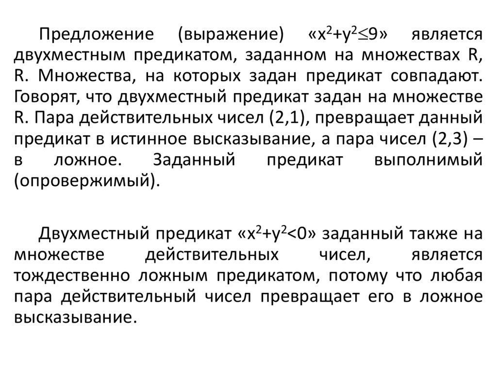 Таким образом, одноместный предикат P(x) - это утверждениеоб объекте х, где х рассматривается как переменная. При