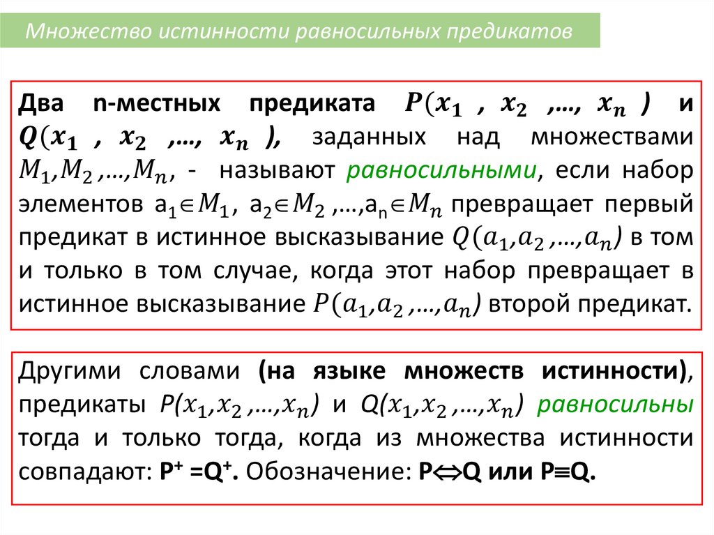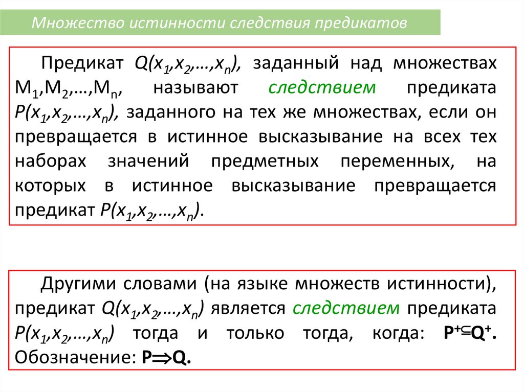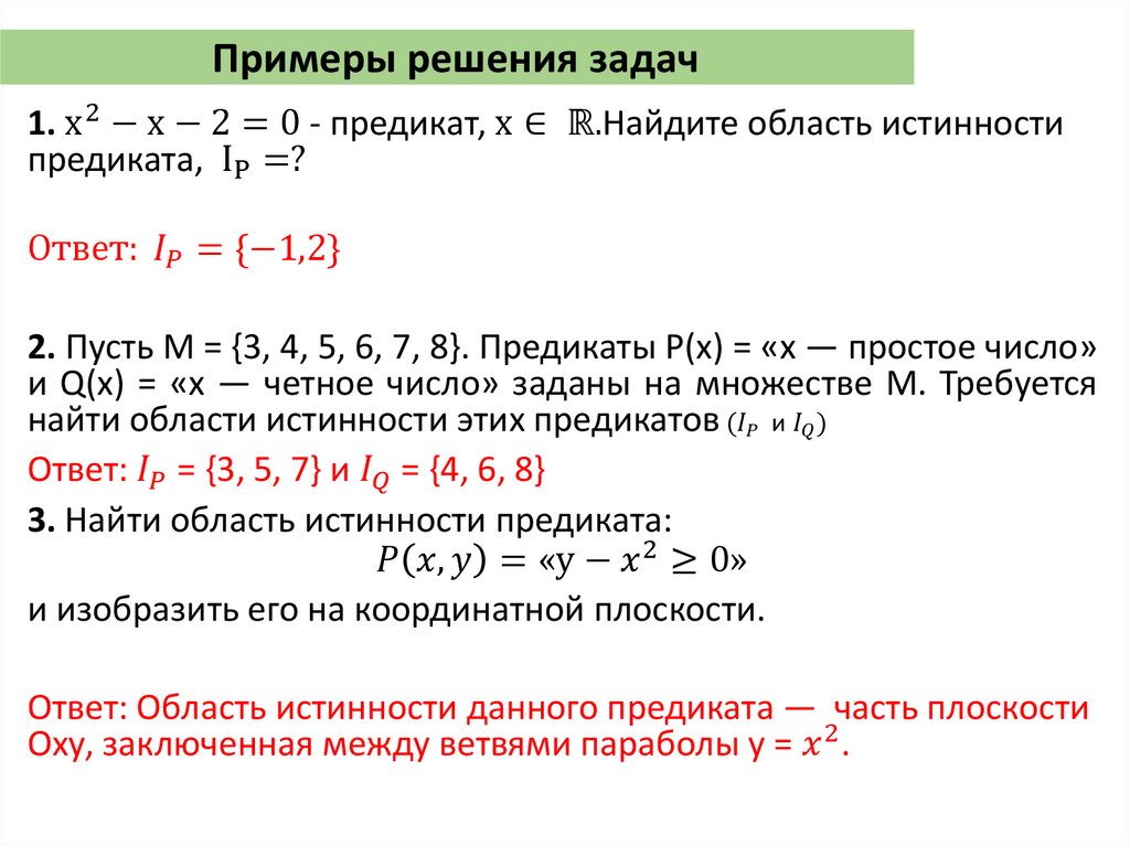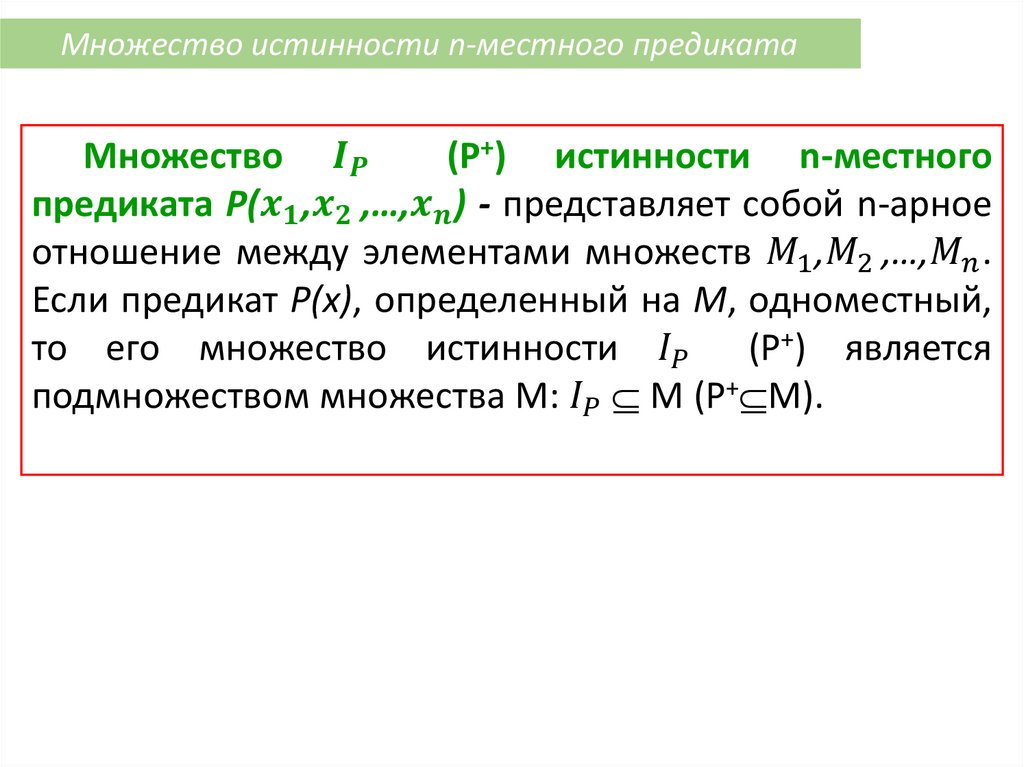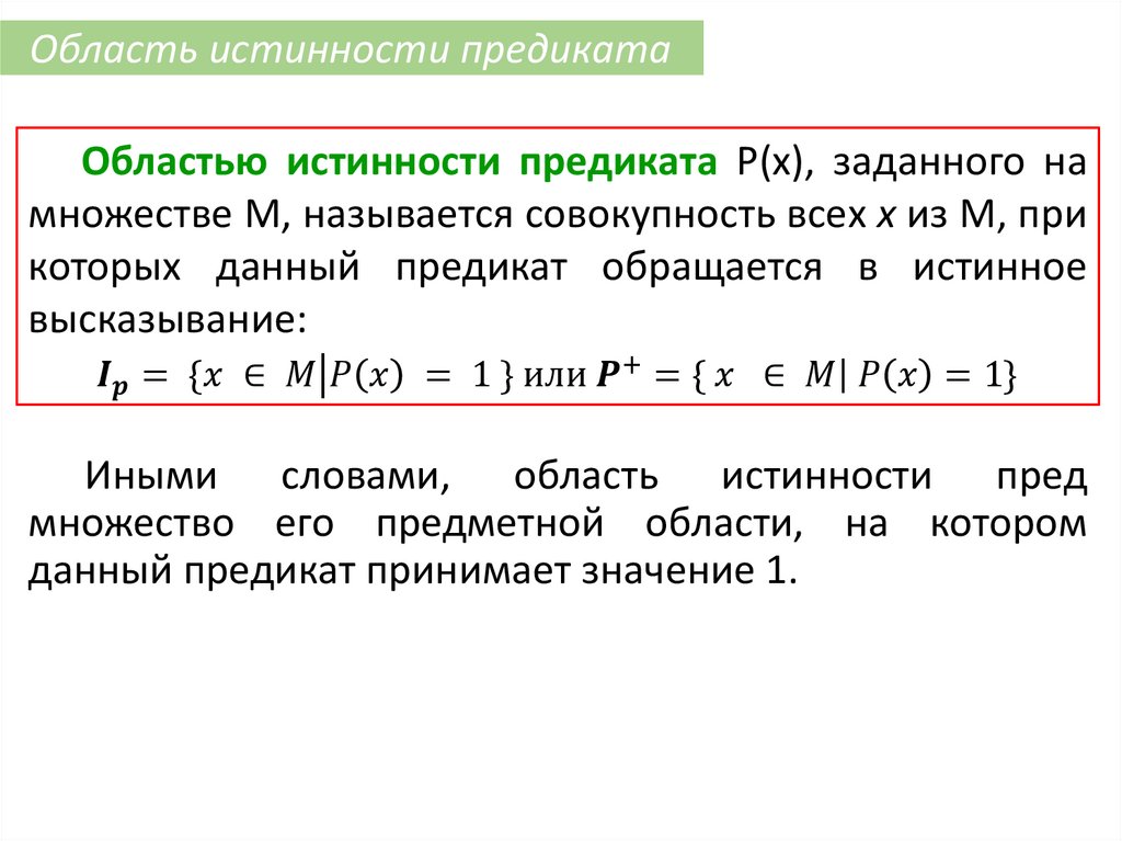 Область истинности предикатаОбластью истинности предиката P(х), заданного на