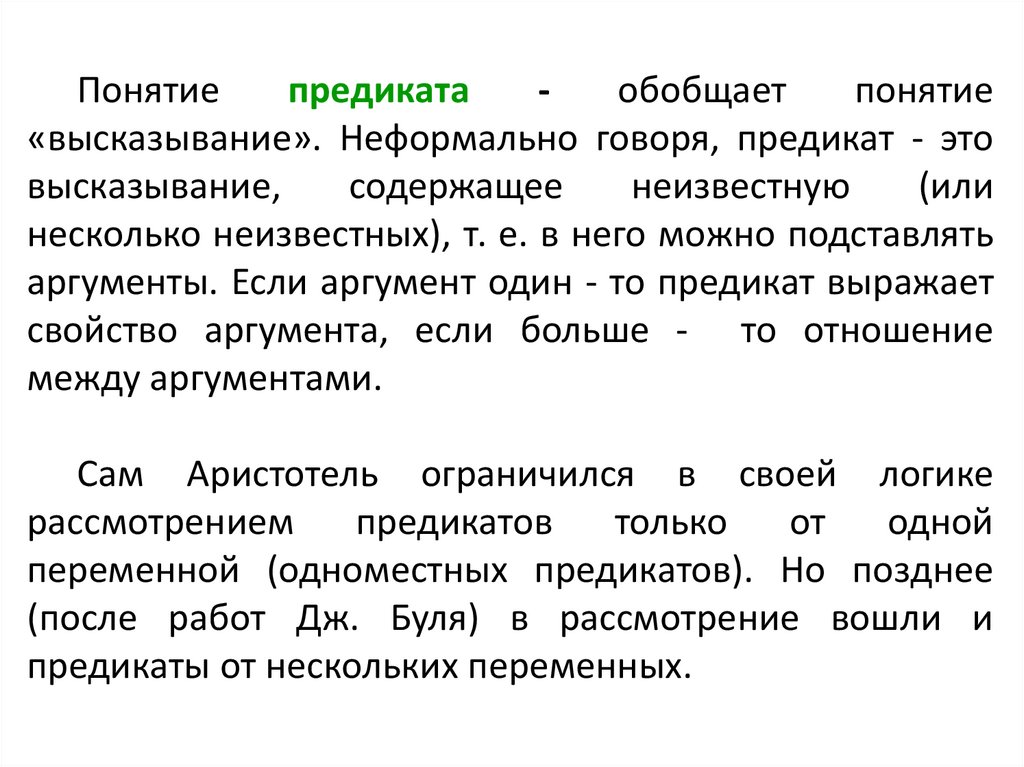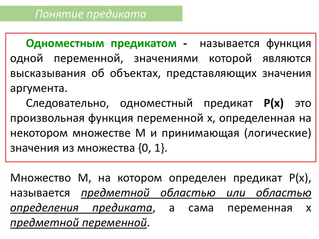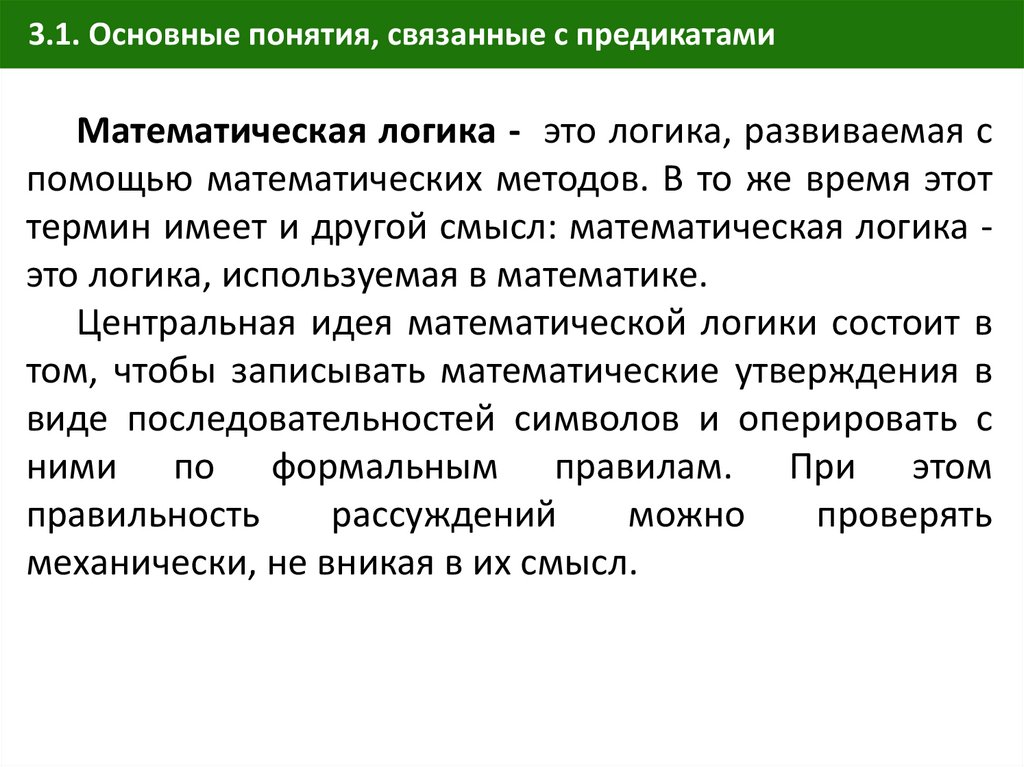 3.1. Основные понятия, связанные с предикатамиМатематическая логика - это логика, развиваемая с