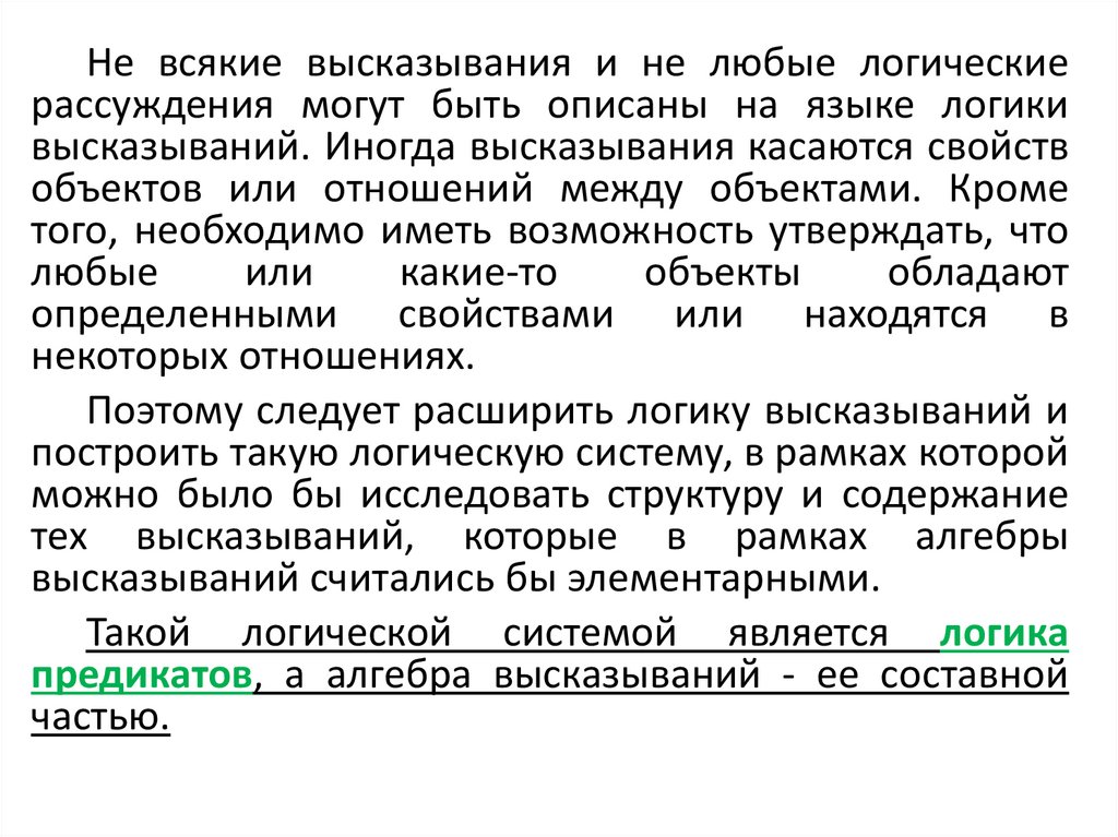 Не всякие высказывания и не любые логическиерассуждения могут быть описаны на языке логики