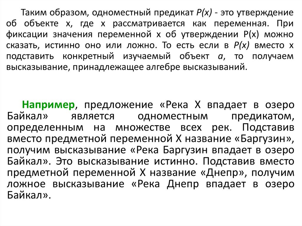 сказать, истинно оно или ложно. То есть если в Р(х) вместо х