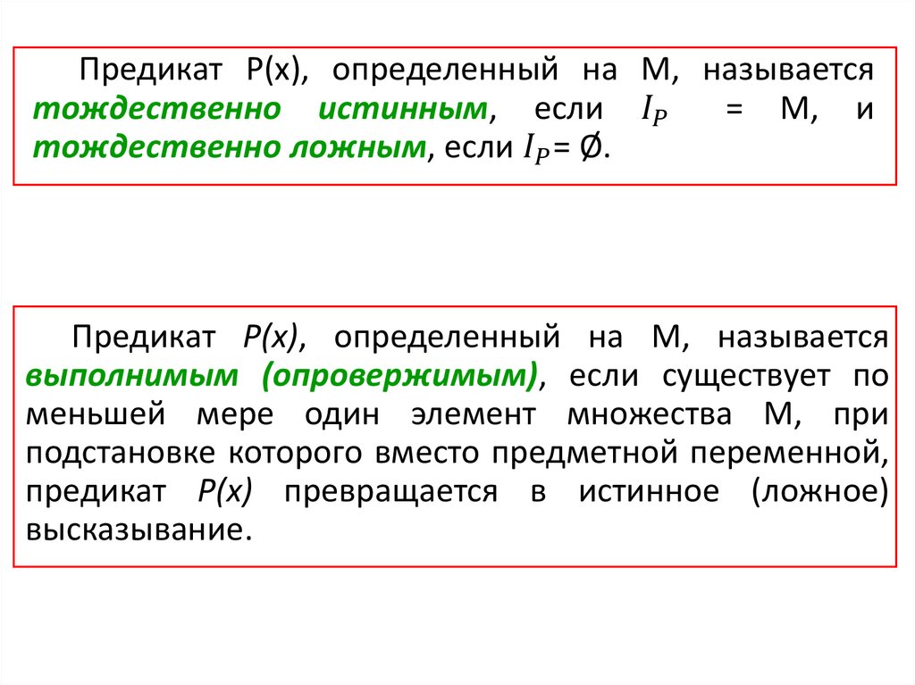 5) Какие предикаты называются тождественно-истинными, тождественноложными, выполнимыми (опровержимыми)?