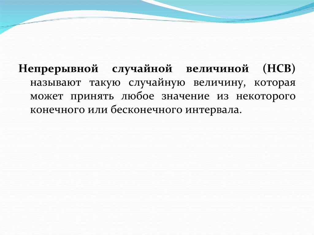 Непрерывной случайной величиной (НСВ)называют такую случайную величину, которая