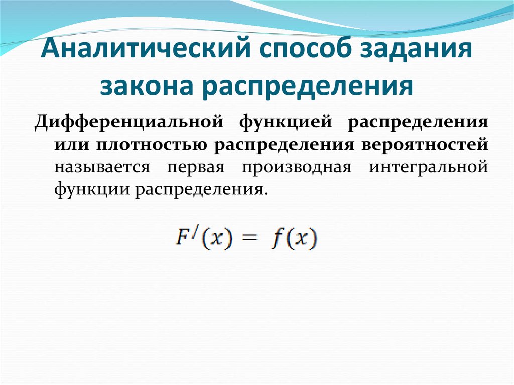Дифференциальной функцией распределенияили плотностью распределения вероятностей