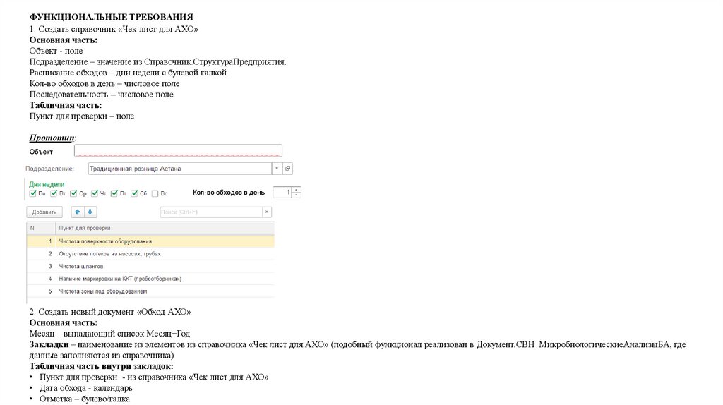 ФУНКЦИОНАЛЬНЫЕ ТРЕБОВАНИЯ1. Создать справочник «Чек лист для АХО»