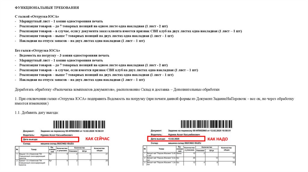 ФУНКЦИОНАЛЬНЫЕ ТРЕБОВАНИЯС галкой «Отгрузка ЮСА»