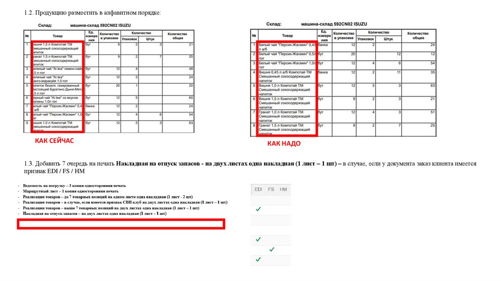 1.2. Продукцию разместить в алфавитном порядке:КАК СЕЙЧАС