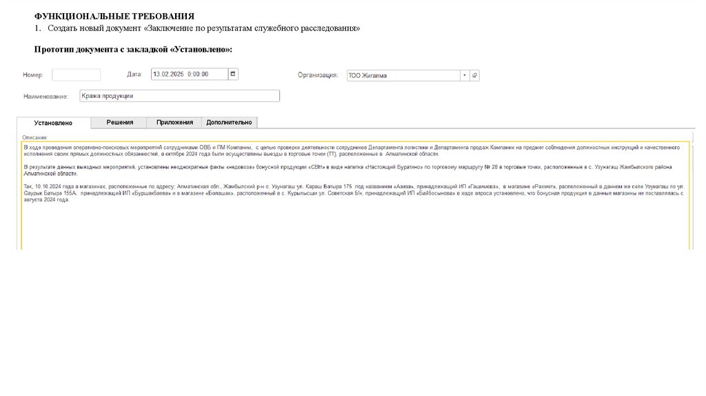 ФУНКЦИОНАЛЬНЫЕ ТРЕБОВАНИЯ1. Создать новый документ «Заключение по результатам служебного расследования»