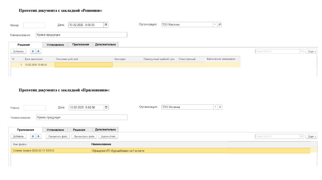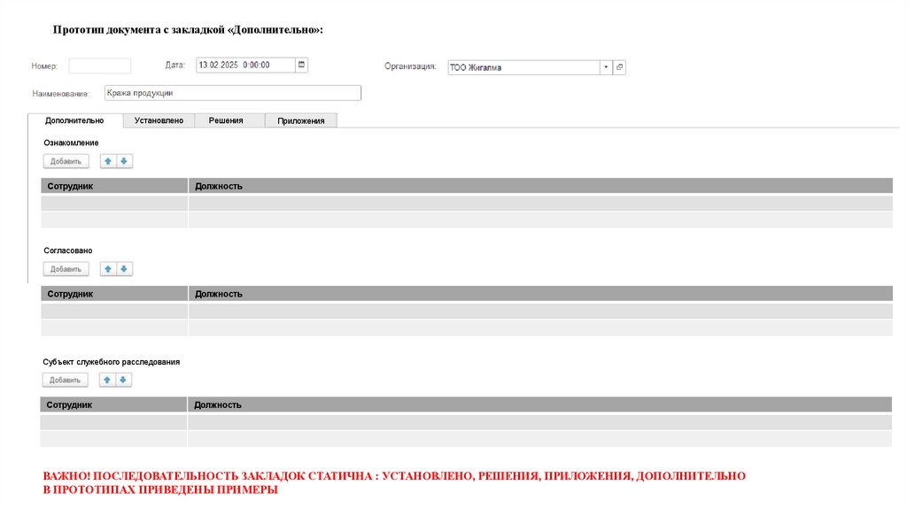 Прототип документа с закладкой «Дополнительно»:Дополнительно