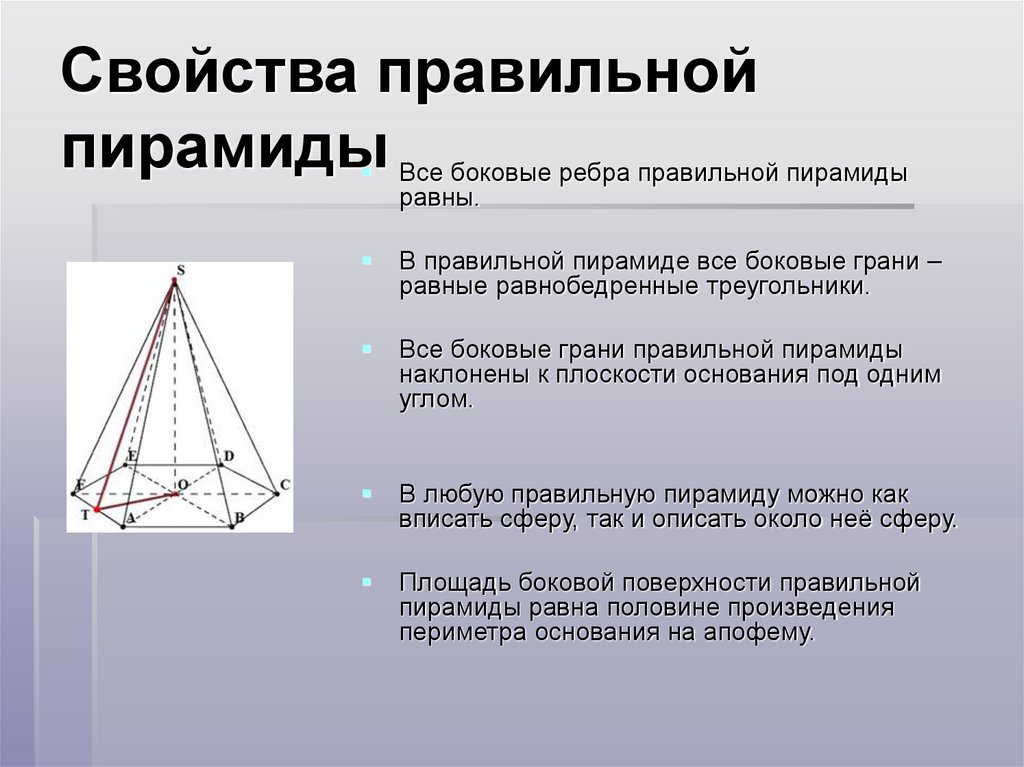 Свойства правильнойпирамиды Все боковые ребра правильной пирамиды