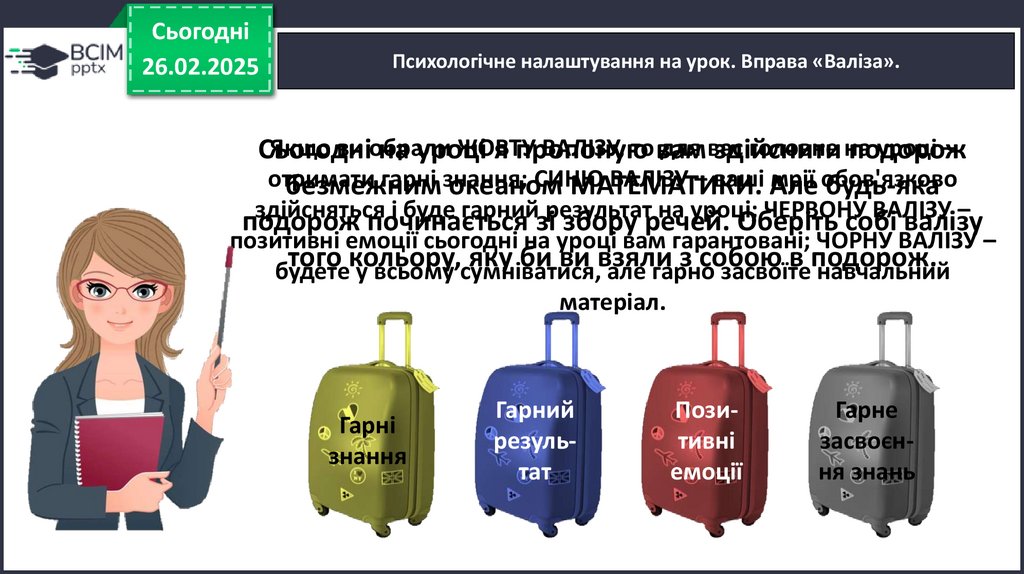позитивні емоції сьогодні на уроці вам гарантовані; ЧОРНУ ВАЛІЗУ –