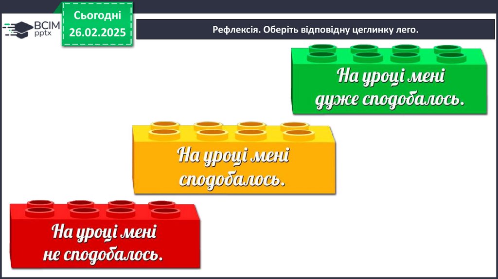 Рефлексія. Оберіть відповідну цеглинку лего.