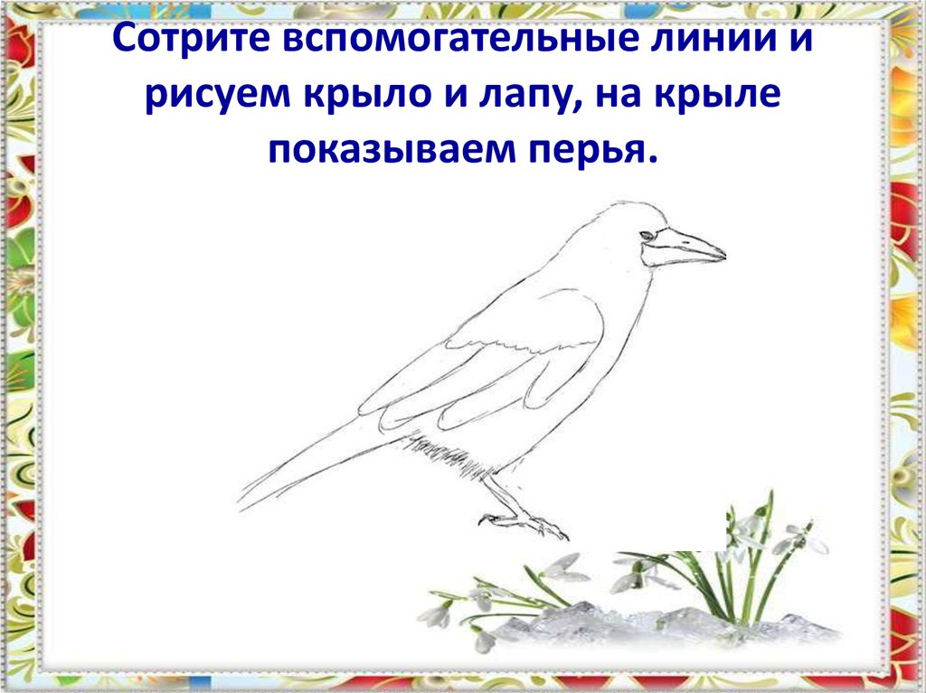 Сотрите вспомогательные линии ирисуем крыло и лапу, на крыле
