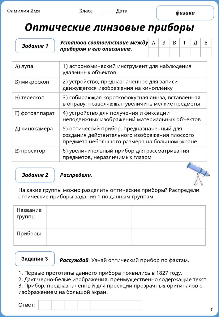оптические приборы задания 1 по данным группам.