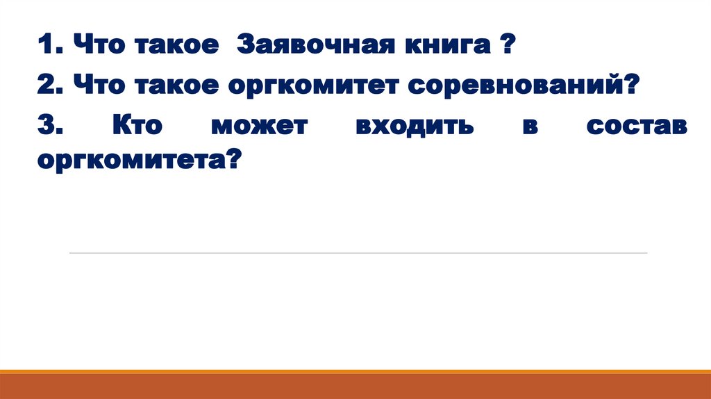 1. Что такое Заявочная книга ?2. Что такое оргкомитет соревнований?