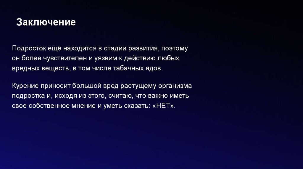 ЗаключениеПодросток ещё находится в стадии развития, поэтому