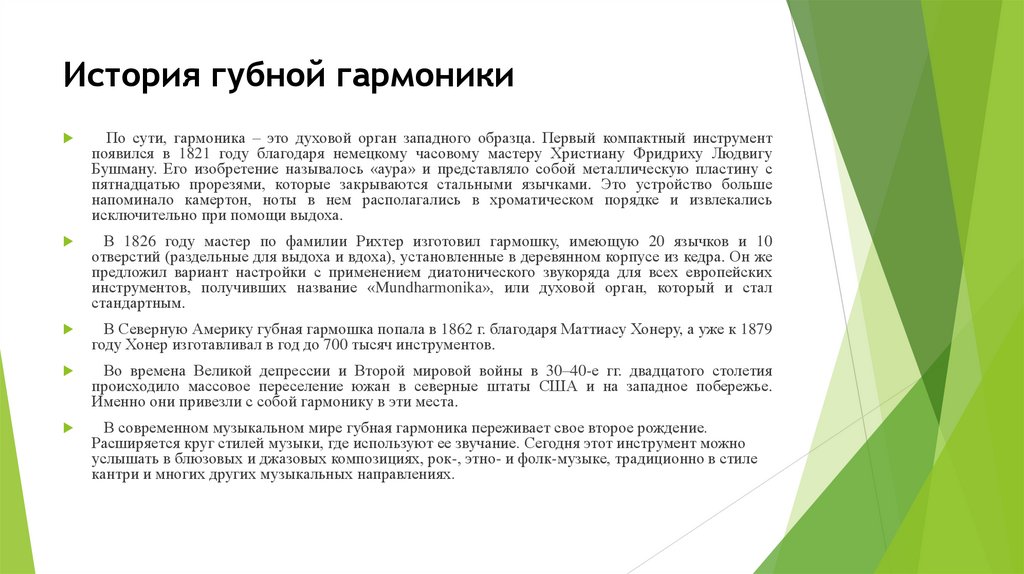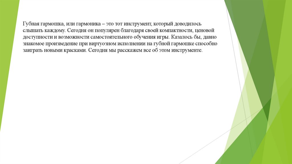 Губная гармошка, или гармоника – это тот инструмент, который доводилосьслышать каждому. Сегодня он популярен благодаря своей компактности, ценовой