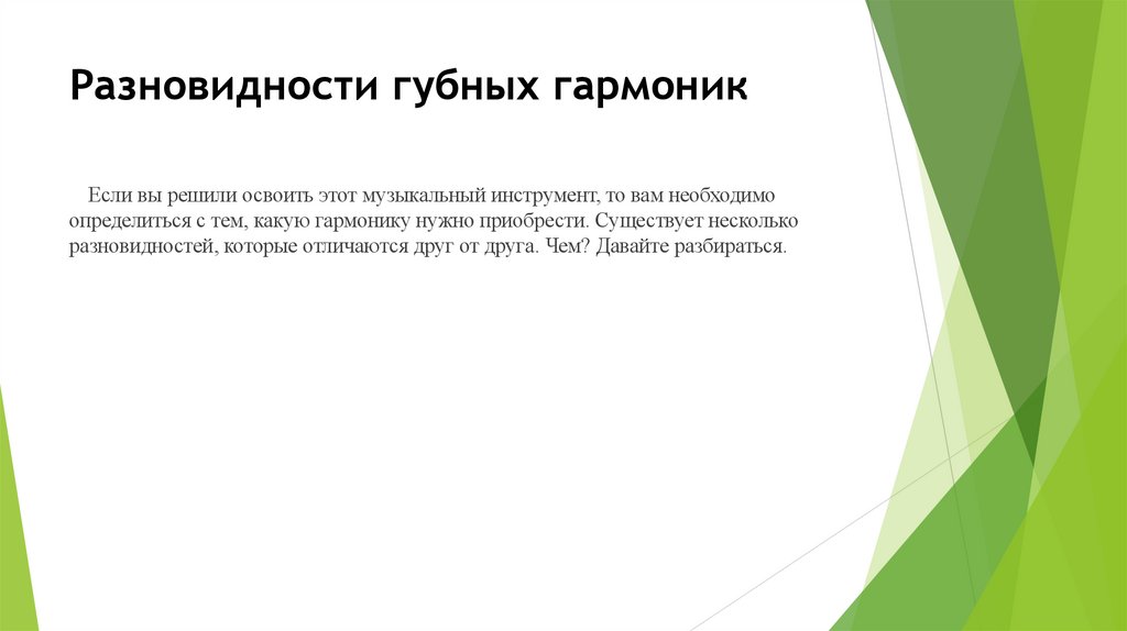 Разновидности губных гармоникЕсли вы решили освоить этот музыкальный инструмент, то вам необходимо
