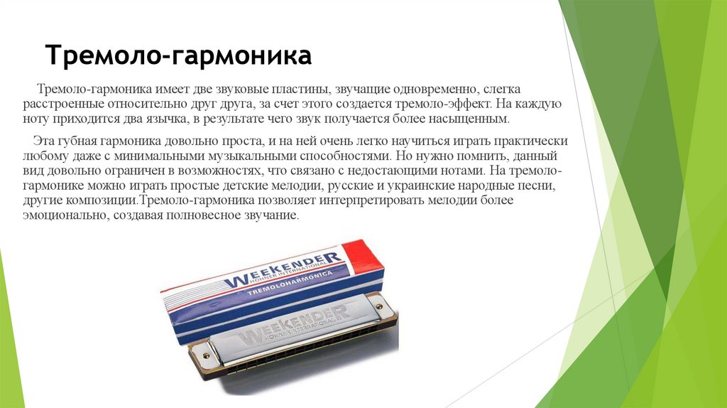 Губная гармошка — один из немногих язычковых музыкальных инструментов, не