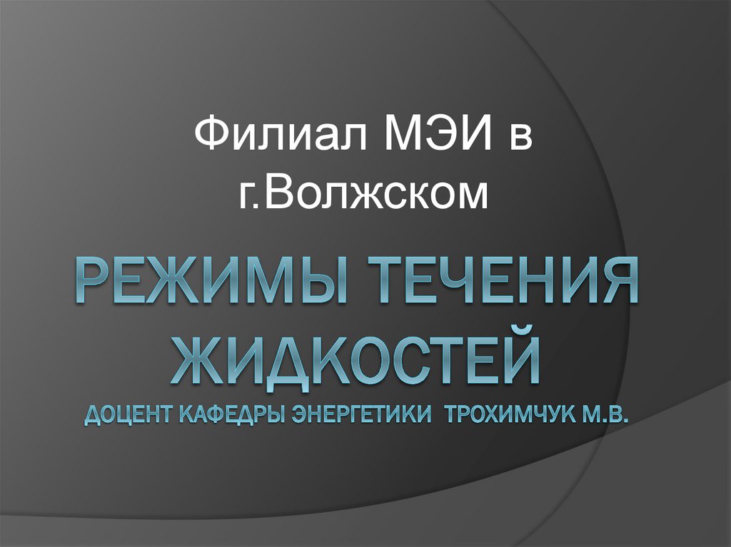 1. Режимы течения жидкостей доцент кафедры энергетики Трохимчук М.В.