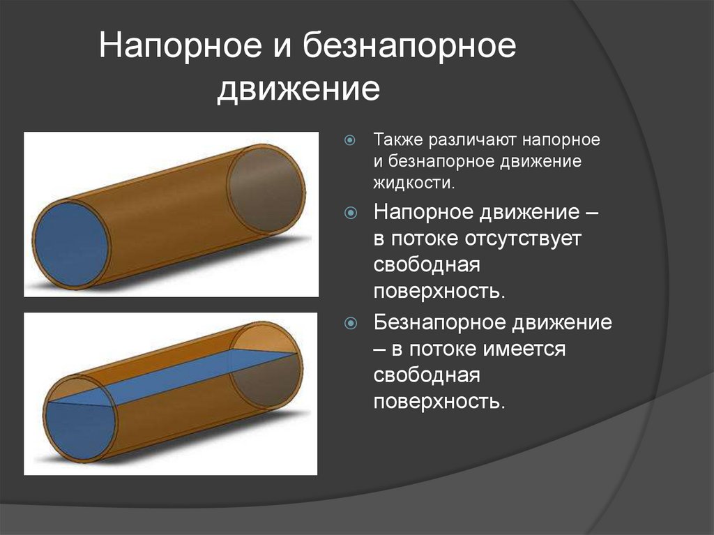 Также различают напорноеи безнапорное движение