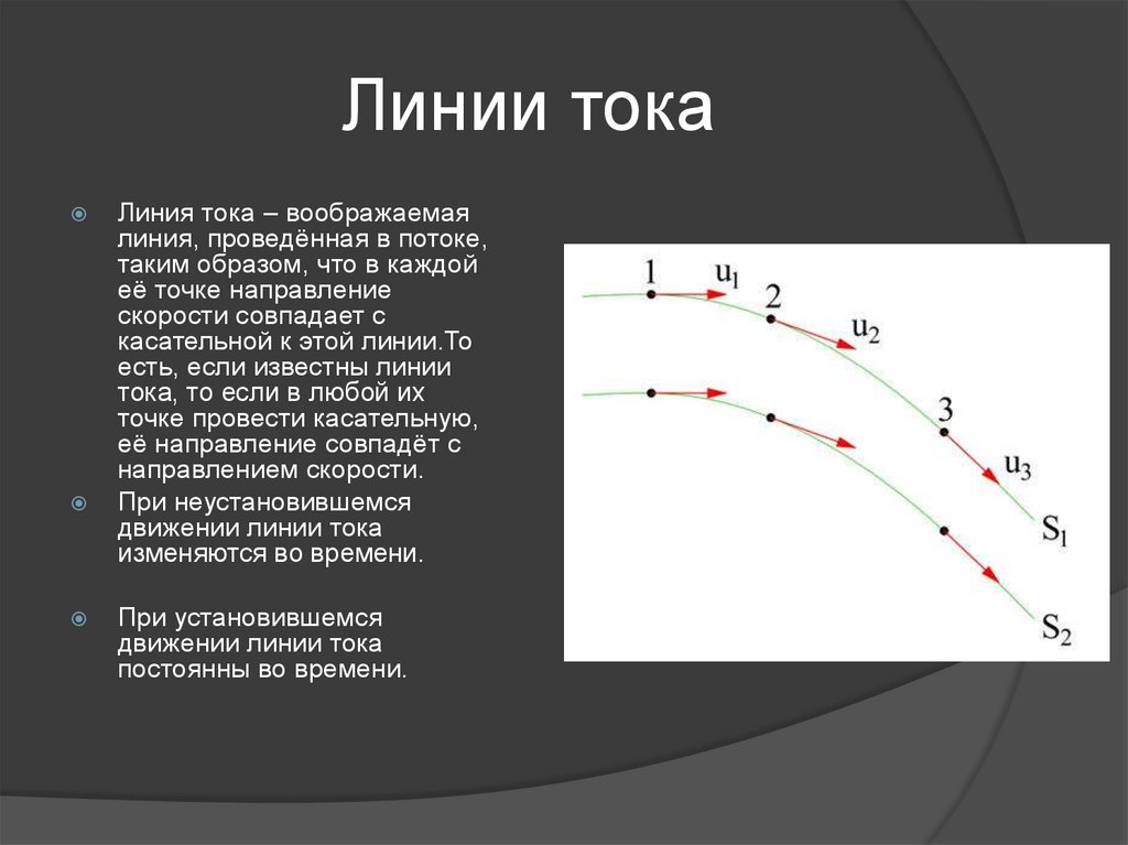 Линия тока – воображаемаялиния, проведённая в потоке,