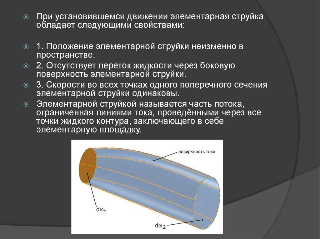При установившемся движении элементарная струйкаобладает следующими свойствами: