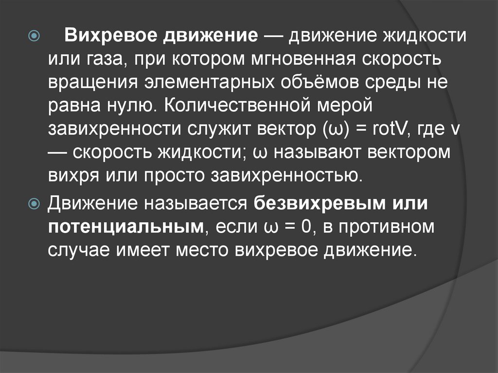 завихренности служит вектор (ω) = rotV, где v