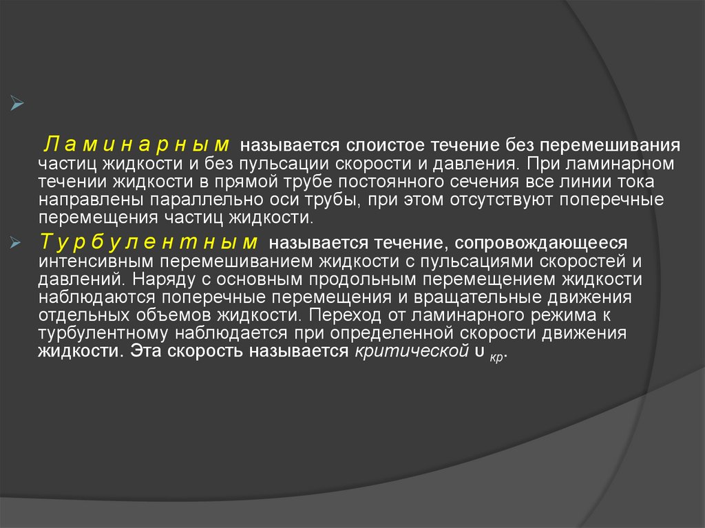 Т у р б у л е н т н ы м называется течение, сопровождающееся
