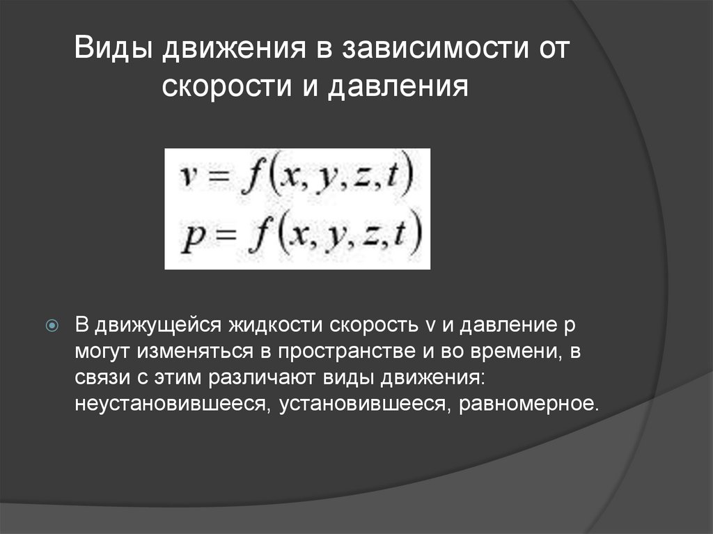8. Виды движения в зависимости от скорости и давления
