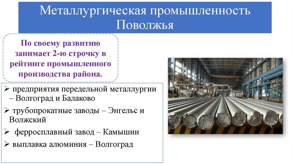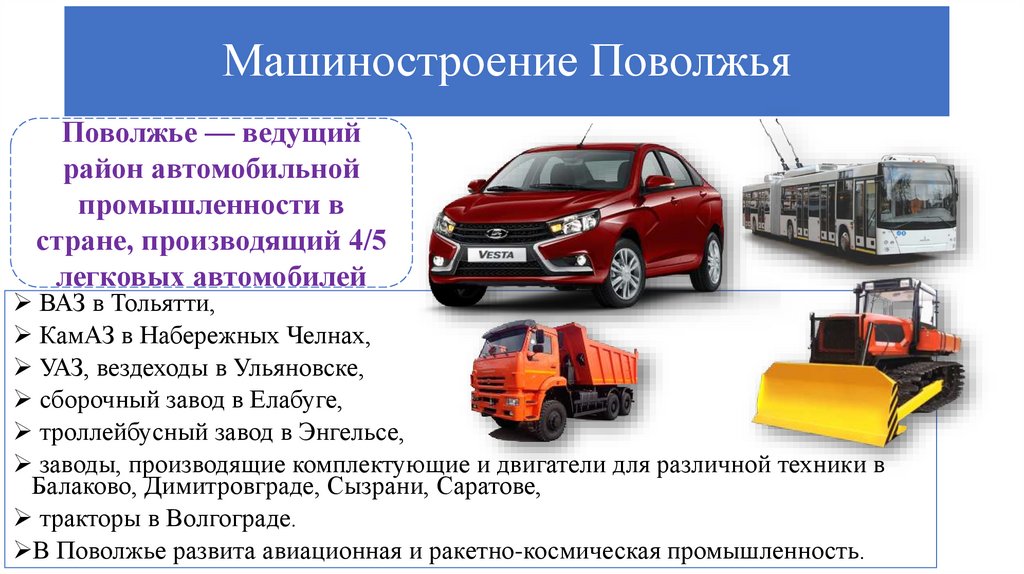 В Поволжье развита авиационная и ракетно-космическая промышленность.