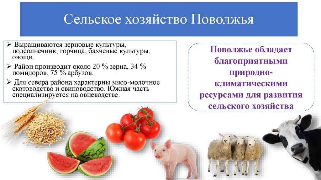 Сельское хозяйство ПоволжьяВыращиваются зерновые культуры,