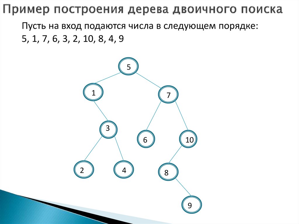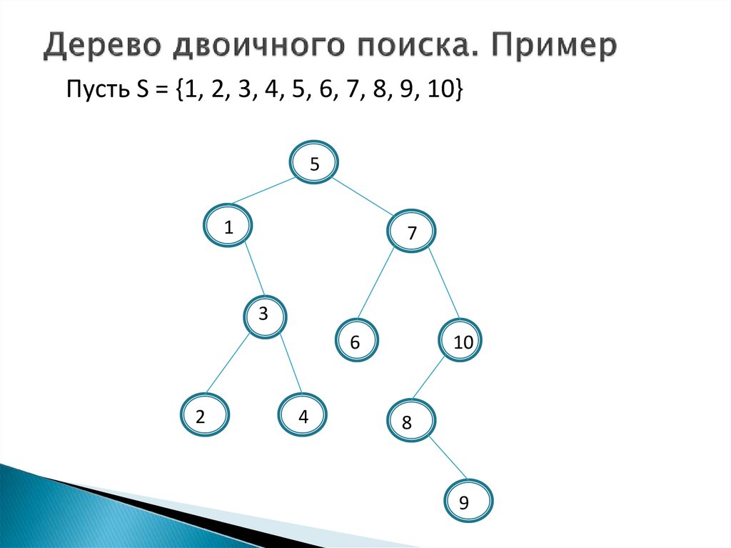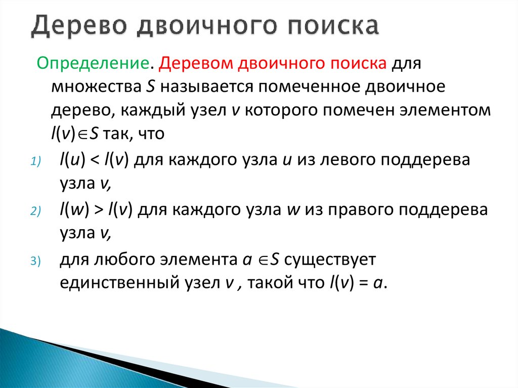 Определение. Деревом двоичного поиска длямножества S называется помеченное двоичное