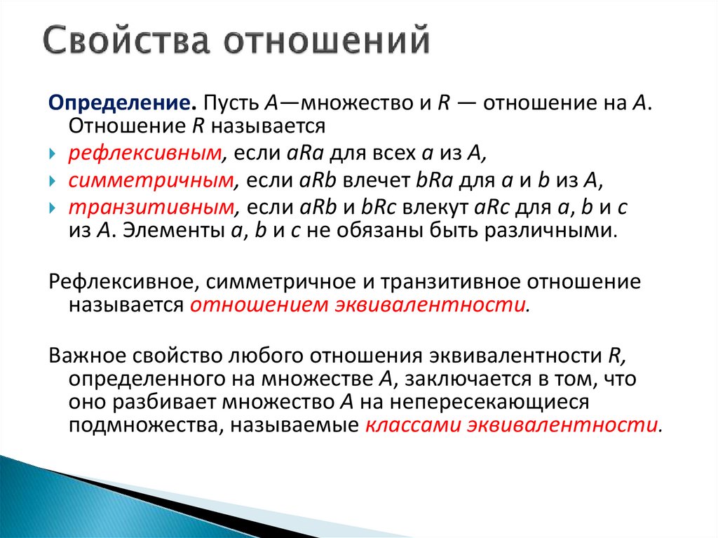 Определение. Пусть A—множество и R — отношение на A.Отношение R называется