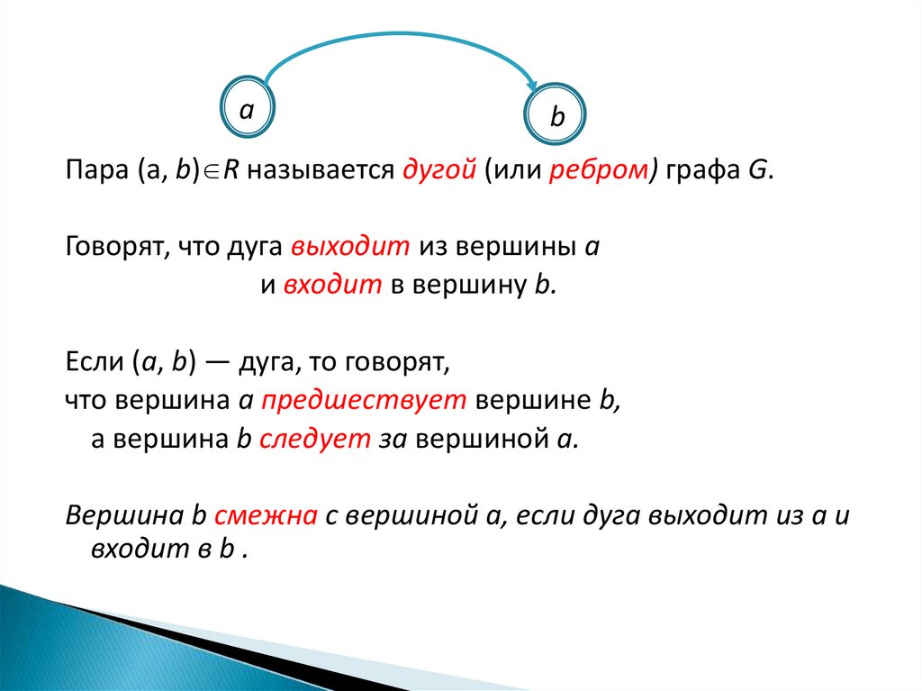 Пара (а, b) R называется дугой (или ребром) графа G.