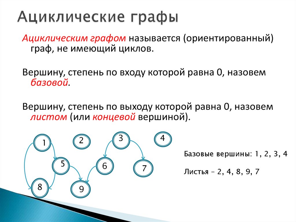 Ациклическим графом называется (ориентированный)граф, не имеющий циклов.