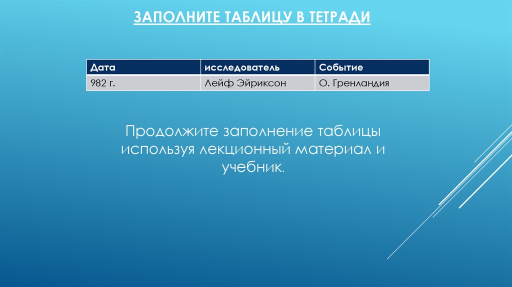 ЗАПОЛНИТЕ ТАБЛИЦУ В ТЕТРАДИДата