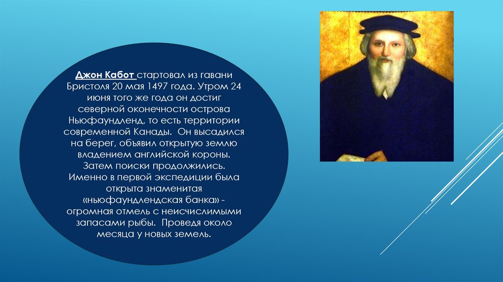 Джон Кабот стартовал из гаваниБристоля 20 мая 1497 года. Утром 24