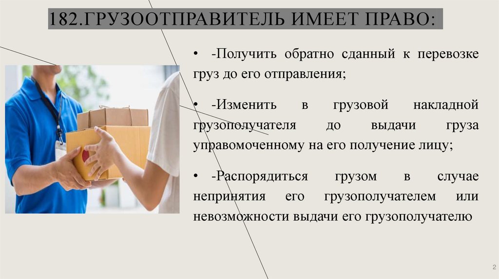 182.ГРУЗООТПРАВИТЕЛЬ ИМЕЕТ ПРАВО:• -Получить обратно сданный к перевозке