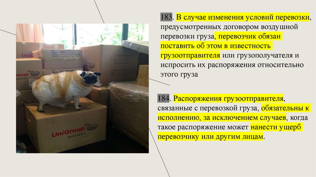 183. В случае изменения условий перевозки,предусмотренных договором воздушной