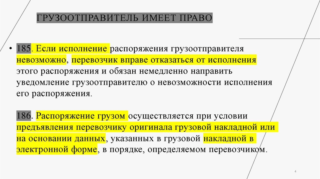 ГРУЗООТПРАВИТЕЛЬ ИМЕЕТ ПРАВО• 185. Если исполнение распоряжения грузоотправителя
