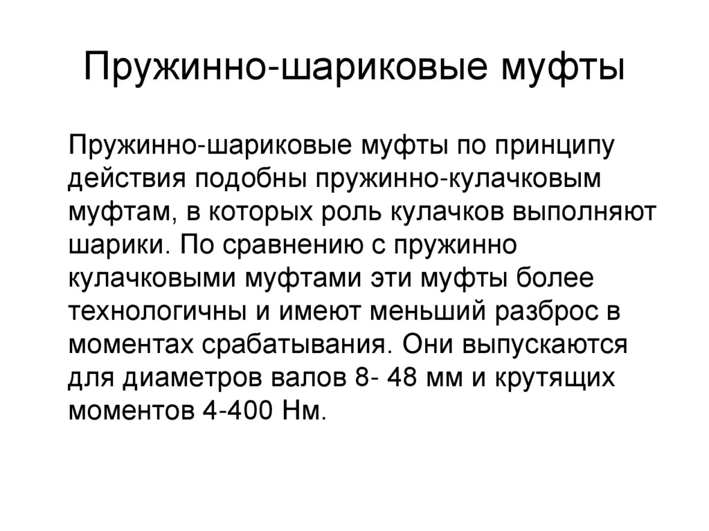 пружинно-кулачковые, пружинношариковые и муфты с