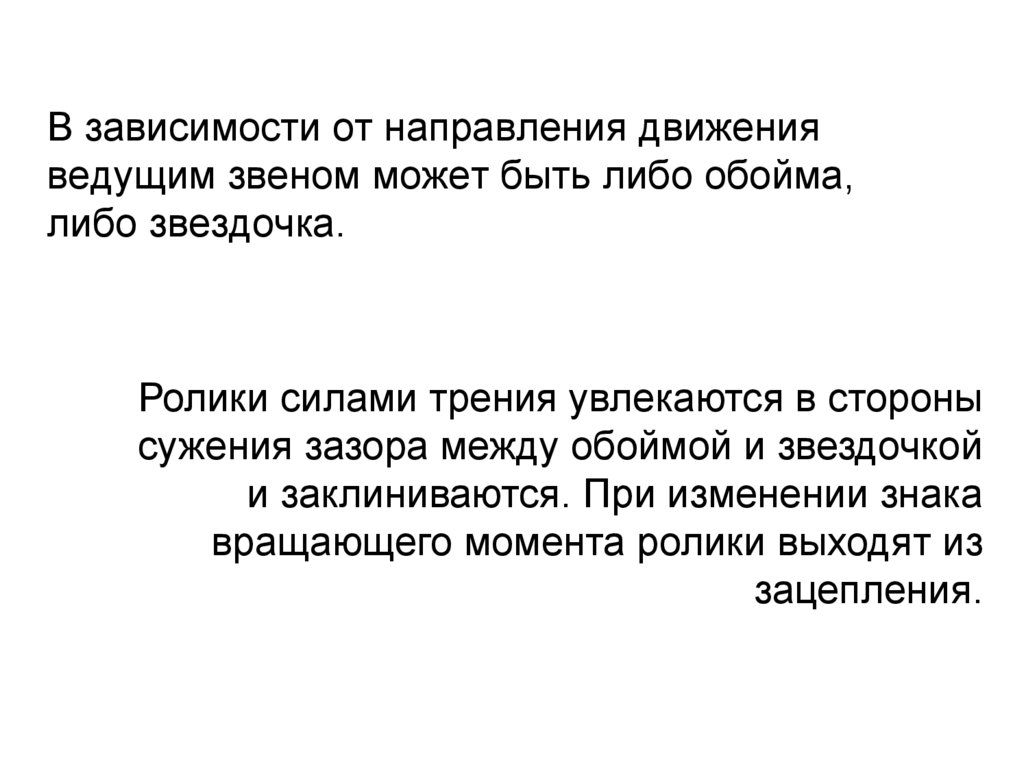 В зависимости от направления движенияведущим звеном может быть либо обойма,