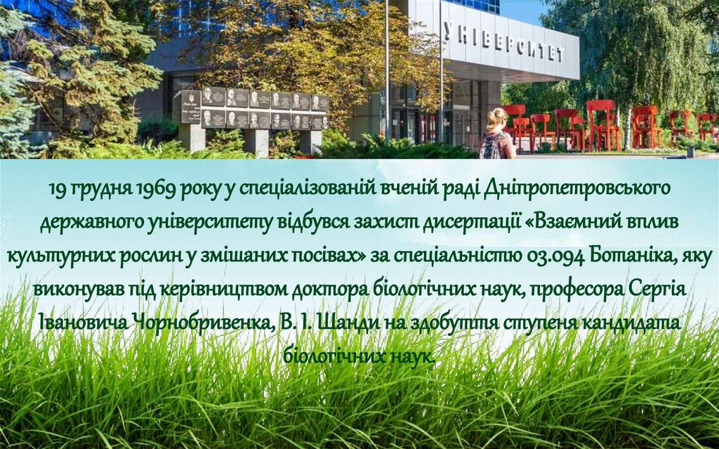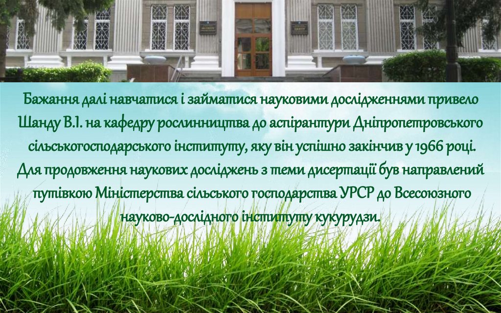 Бажання далі навчатися і займатися науковими дослідженнями привелоШанду В.І. на кафедру рослинництва до аспірантури Дніпропетровського