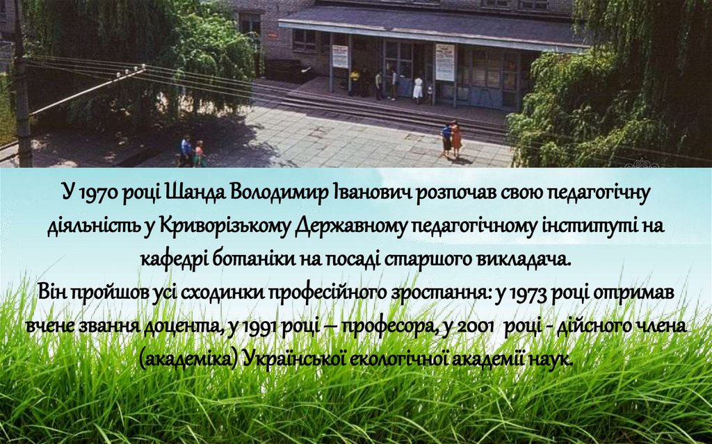 У 1970 році Шанда Володимир Іванович розпочав свою педагогічнудіяльність у Криворізькому Державному педагогічному інституті на