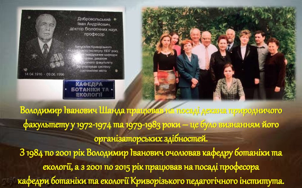 Володимир Іванович Шанда працював на посаді декана природничогофакультету у 1972-1974 та 1979-1983 роки – це було визнанням його